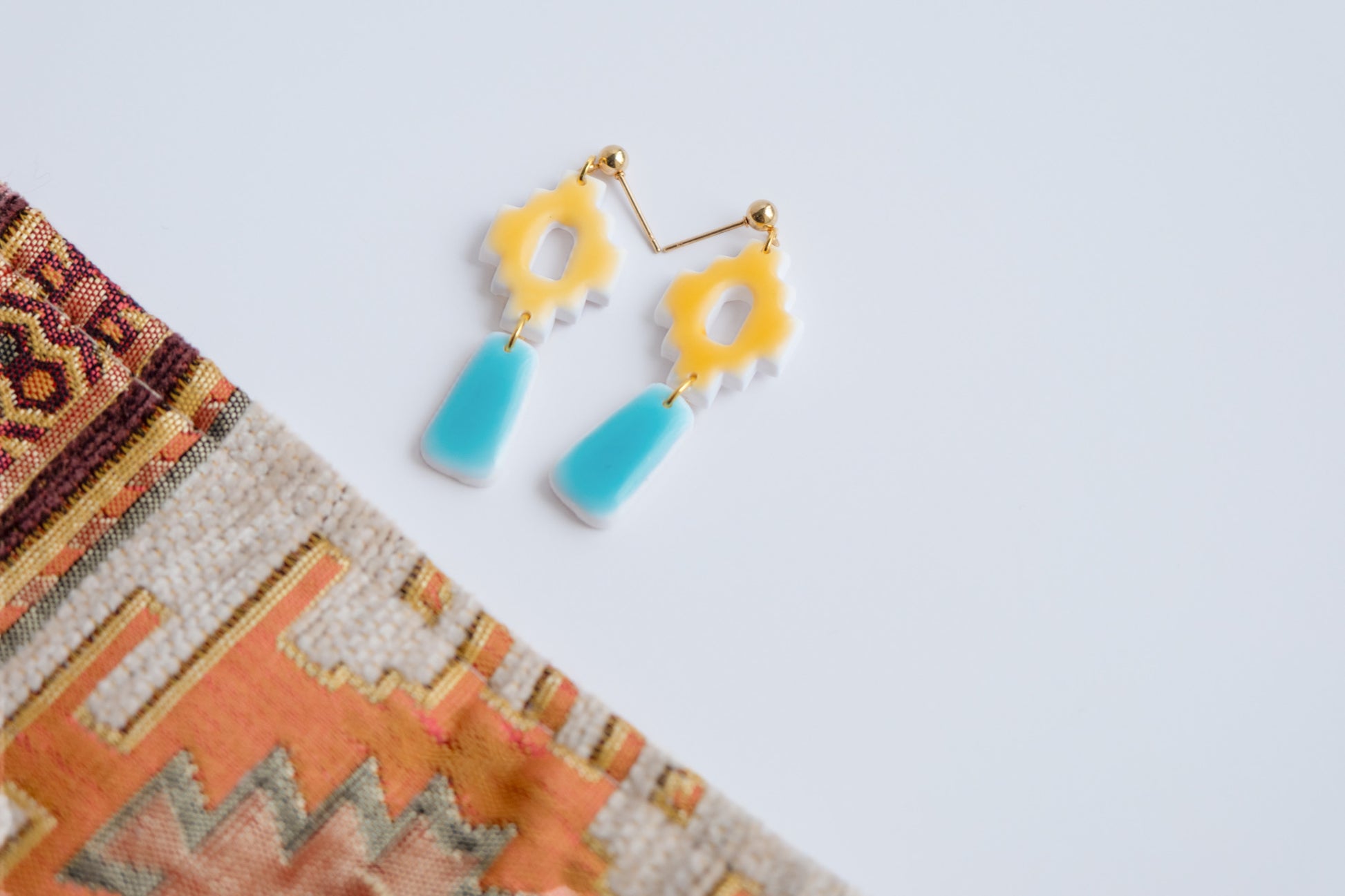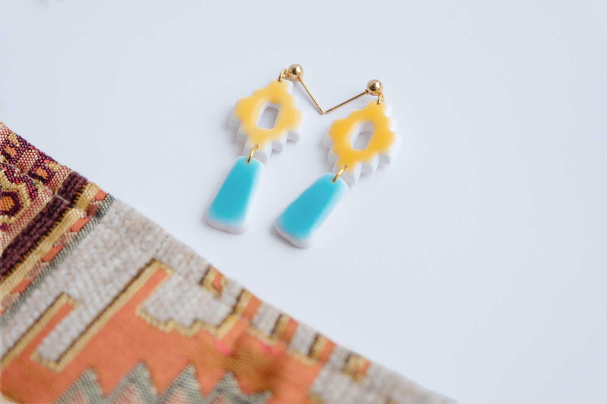 Handmade polymer clay jewelry inspired by designs/motifs found in the Balkans.